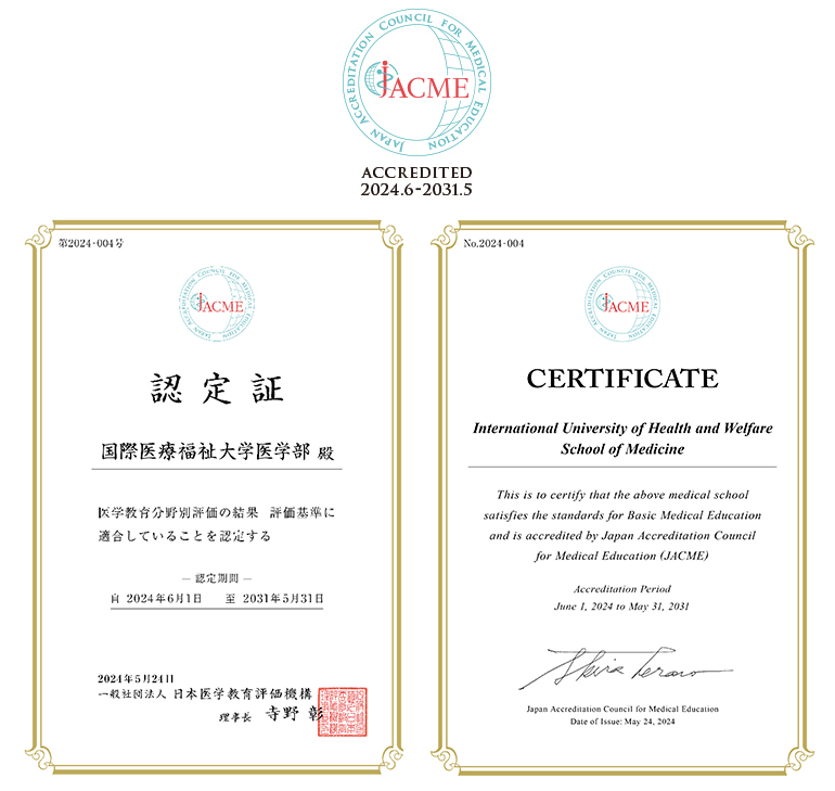 本学医学部は、2023年に一般社団法人日本医学教育評価機構(JACME)