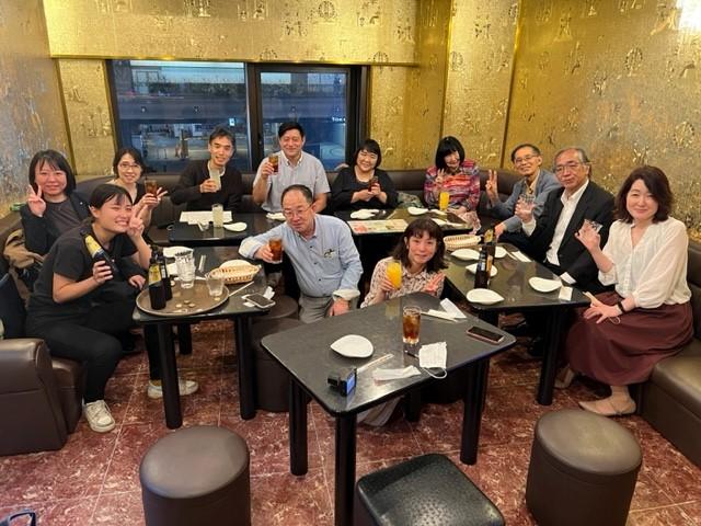 ゲスト講師、患者と家族と医療をつなぐNPO法人架け橋の豊田郁子さん(奥中央)を囲んでの「放課後」懇親会