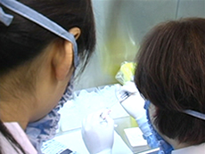 抗がん薬注射剤混合調製実習においては、実際の抗がん剤をもちいて、抗がん剤ミキシングの実際を学ぶことができます。抗がん剤調製のために必要かつ適切な溶液の選択と調製後の薬剤の安定性や抗がん剤の適切な投与経路を薬剤調製実習を通じて身に着けることができます。