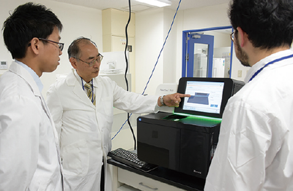 疾患の発症原因の解明をめざすゲノム医学研究の推進とその成果を診療に導入することをめざし開設。世界最高水準のゲノム解析機器・次世代シーケンサーを設置しています。