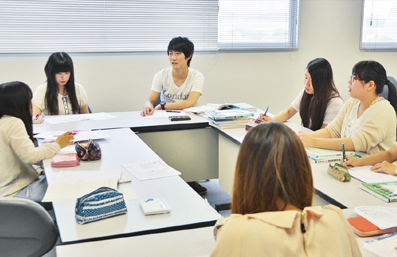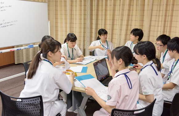 「関連職種連携ワーク」は、他職種をめざす仲間とともに1つの症例について討議を重ねる、問題解決型の学修です。「職種間連携とは何か」を現実的に考え、その重要性や問題点などを理解します。また、医療福祉の国際化に対応するべく、英語で討議やプレゼンテーションを行う「GIPE※チーム」も、2014年度からスタートしました。