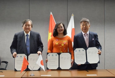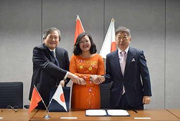 学校法人国際医療福祉大学は医療法人財団順和会山王病院と、ベトナムの国立産科病院のフンブン病院との間で学術交流協定を締結することになり、1月18日、東京赤坂キャンパスで3者間の調印式が行われました。 調印式にはフンブン病院のホアン・ティ・ジェム・トゥエット病院長、国際医療福祉大学の高木邦格理事長、山王病院の堤治病院長が出席しました。3者間の協力に関する合意書では、①専門家および研究者の交流②フンブン病院における国際医療福祉大学学生の研修受け入れ③研究協力の実施と学術会議の開催④学術目的での情報・出版・物品等の交換⑤その他の学術協力の促進―の5分野とその関連領域で学術交流と協力の意義を認識し、促進していくことで合意したことが明記されています。