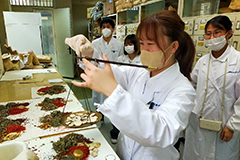 今年度の中国研修には大川、成田、福岡国際医療福祉大学の3キャンパスの学生20人と教員2人が参加した。学生は中国リハビリテーション研究センター(CRRC)の中医科、漢方薬局、看護病棟、理学療法室、作業療法室、医学検査科、脊椎外科の各部門で病院スタッフに指導してもらった。中国最先端のリハビリ用ロボットを体験し、CRRCの関連施設である北京按摩病院の東洋医学センターで学生たちは鍼灸療法や吸い玉療法を体験できた。学生たちは漢方薬局で生薬を手で触ったり、特有の香りを嗅いだり、興味津々だった。