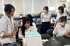 臨床検査技師の業務である、採血、病原性微生物の同定、病理検査のための組織固定や作業療法と理学療法を組み合わせてリハビリテーションとAIを融合させた新しい治療などを教授や現地の学生に教わった。言葉の壁はあったが、わかりやすく教えていただいた。また、クイズや折り紙など日本の伝統を通して友達の輪を広げることができた。実際に韓国の医療機関を見たことで日本との差を知ることができ、視野が広がった。この経験を生かし努力したい。