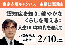 2月10日(土)東京赤坂キャンパス市民公開講座「認知症を知り、健やかなくらしを考える:人生100年時代を迎えて」開催