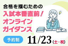 入試まであとわずか!今からでも間に合う入試対策について、学生が合格体験をまじえてお話します!