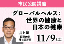 11月9日(土)東京赤坂キャンパス市民公開講座「グローバルヘルス:世界の健康と日本の健康」開催