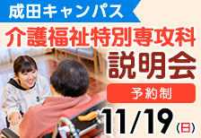 成田キャンパス 2023年10/21(土)・11/19(日)介護福祉特別専攻科 説明会
