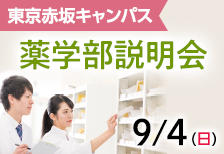 9月4日(土)薬剤師をめざす方お待ちしています。薬学部説明会を開催(会場:東京赤坂キャンパス)