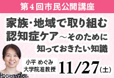 11月27日(土)東京赤坂キャンパス市民公開講座「家族・地域で取り組む認知症ケア~そのために知っておきたい知識」開催