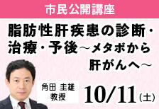 10月11日(土)東京赤坂キャンパス市民公開講座「脂肪性肝疾患の診断・治療・予後~メタボから肝がんへ~」開催