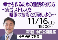 第9回 市民公開講座のお知らせ「幸せを作るための睡眠のあり方 ~疲労・ストレスを睡眠の技術で打破しよう~」