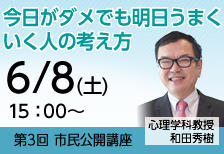第3回 市民公開講座のお知らせ 「今日がダメでも明日うまくいく人の考え方」