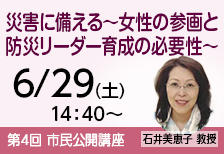 第4回 市民公開講座のお知らせ 「災害に備える ~女性の参画と防災リーダー育成の必要性~」