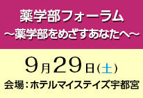 9月29日(土)薬学部受験をめざすあなたへ。 薬学部フォーラムを開催。(会場:ホテルマイステイズ宇都宮)