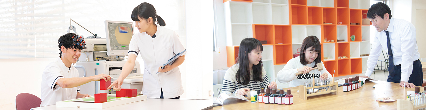 身体障害を持つ人に対して、日常的な身の回りの活動(食事・入浴など)や社会的活動(交流・仕事など)を回復するための訓練を行うほか、精神障害を持つ人の自立や社会復帰を支援します。障害の特性やその人の好みにより、①食事などの日常動作 ②木工・絵画などの創作 ③遊び ④スポーツなどを用いるほか、自助具の開発や住宅環境の改善を行います。